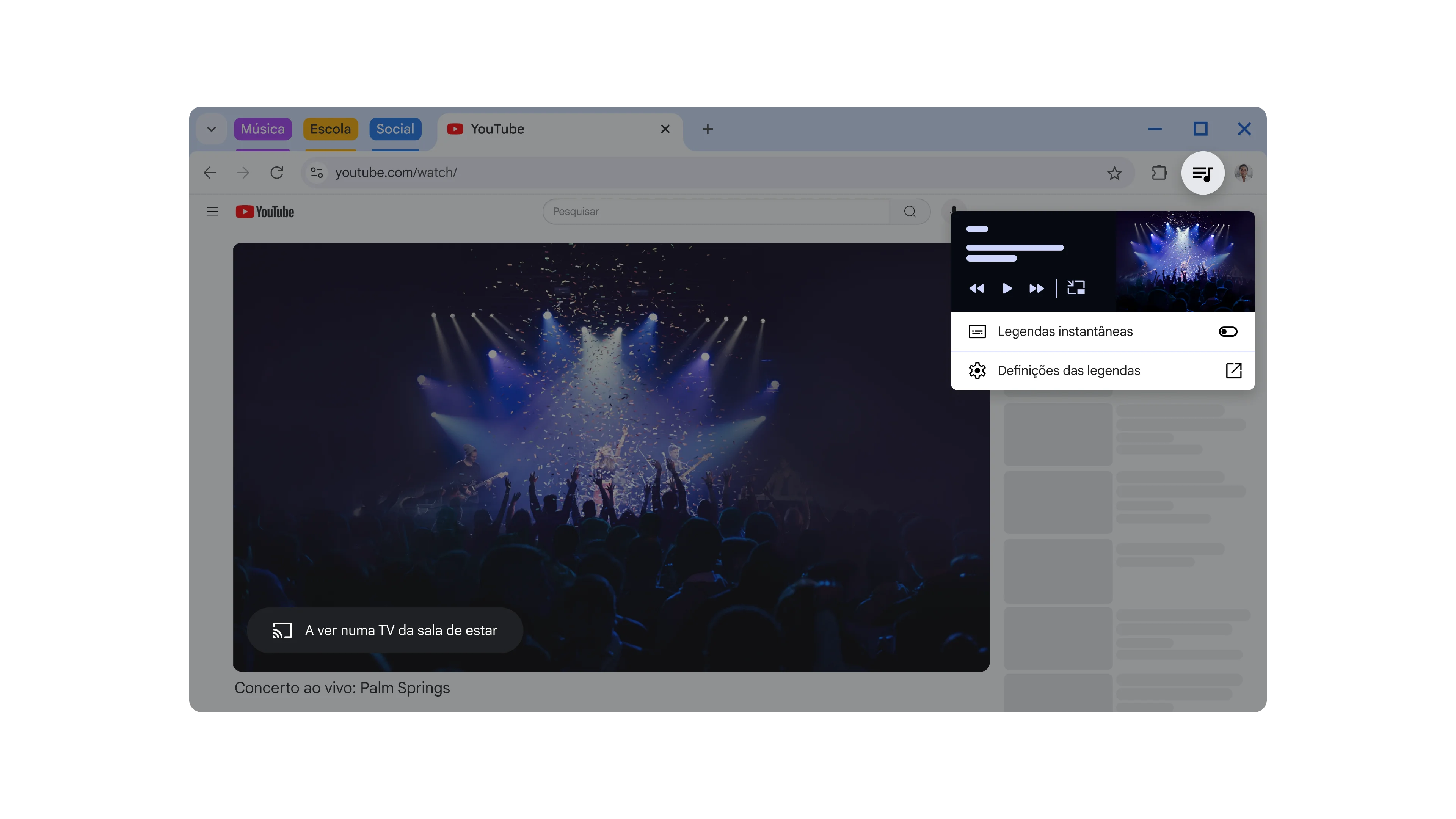 Com o Chrome, pode transmitir conteúdo do seu computador ou telemóvel para a TV com o Google Cast integrado. Escolha se quer transmitir o ecrã inteiro ou apenas um separador específico.