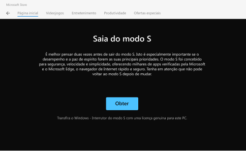 Para terminar a instalação do Chrome, tem de sair do modo S.